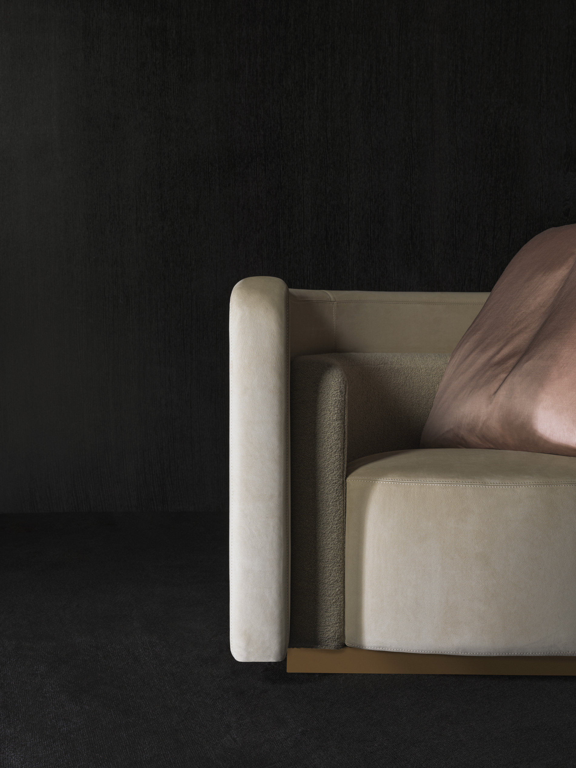 La poltrona Esedra è caratterizzata da un doppio schienale, una poltrona unica nel suo genere e caratterizzata da una forte personalità; lo schienale interno, quello più basso facilità l’appoggio dei gomiti per una sensazione di comodità unica rispetto alle altre poltrone. Sempre disponibile in abbinamenti combinati di pelle e tessuto a seconda delle esigenze di abbinamento più ricercato.